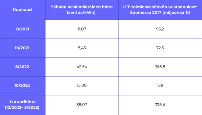 Vastaavasti Liikenne- ja Viestintäministeriön julkaisun mukaan Suomessa ICT-toimialan sähkönkulutus oli yhteensä noin 0,86 TWh/a vuonna 2017, mikä on noin 1,3 % maan sähkön kokonaiskulutuksesta.